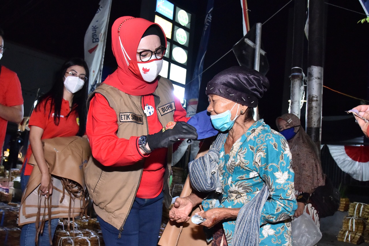 SUKOHARJO – Usai Subuh, Bupati Sukoharjo, Etik Suryani mengunjungi pasar pagi Ir Soekarno, Senin (16/8/2021). Ia memantau pelaksanaan protokol kesehatan (prokes) di Pasar Ir Soekarno yang jadi percontohan. Ke depan, Etik Suryani meminta pasar tradisional yang ada di Sukoharjo juga melaksanaan prokes dengan baik. Ia juga menyempatkan diri untuk berbelanja kebutuhan sehari-hari.