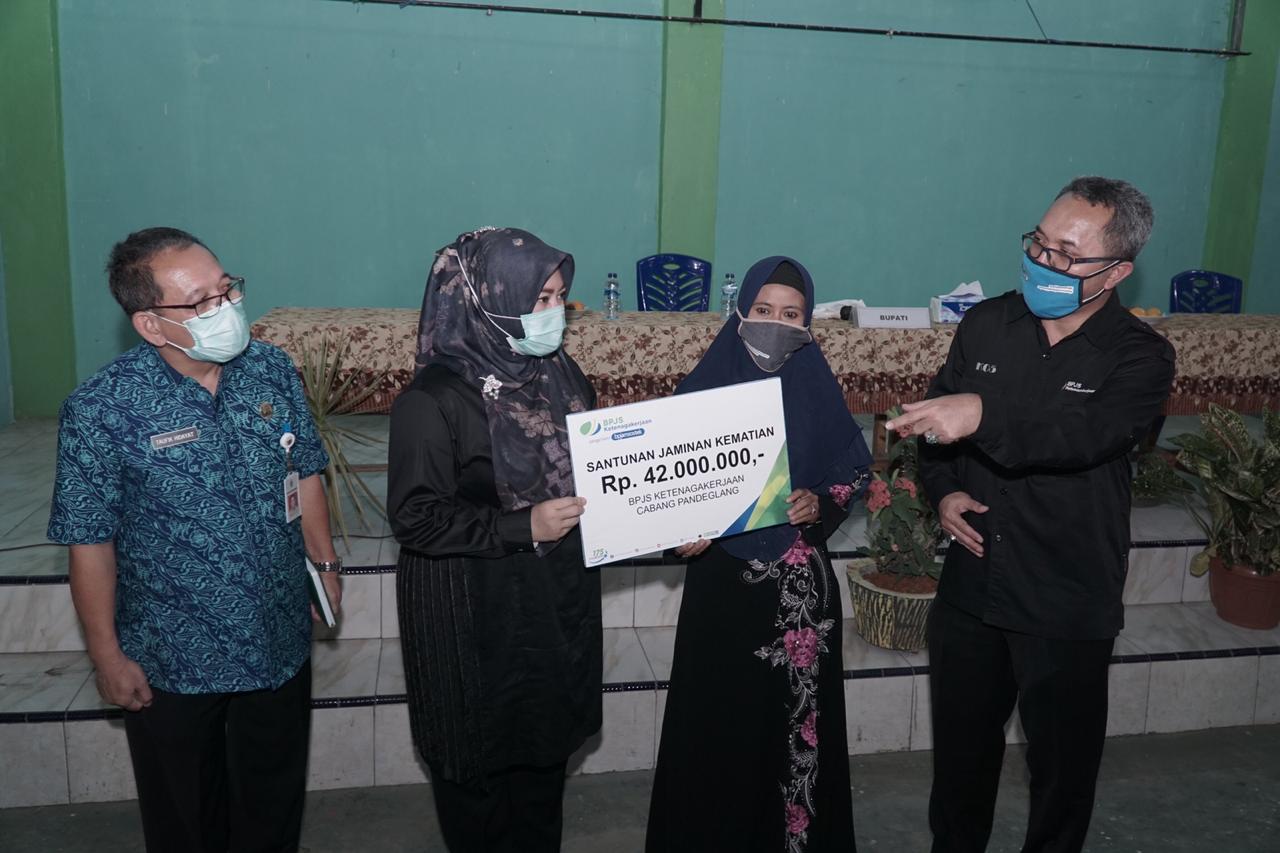 Pandeglang, Siberindo.co – Didin Haryono Kepala Cabang Utama BP Jamsostek Serang Raya menyebut Bupati Pandeglang Irna Narulita, sangat konfrehensif (memyeluruh) memberikan jaminan sosial bagi para aparatur non PNS yang ada di Pandeglang. “Secara parsial ada di Kabupaten lainnya yang ada di Banten, namun di Pandeglang Bupatinya sangat perduli bahkan beliau langsung turun ke lokasi,”ungkap Didin Haryono pada acara sosialisasi Jaminan Kecelakaan Kerja (JKK) dan Jaminan Kematian (JKM) bagi para Guru TKS, di Kantor PGRI Kecamatan Sukaresmi, Kamis (17/9/2020).