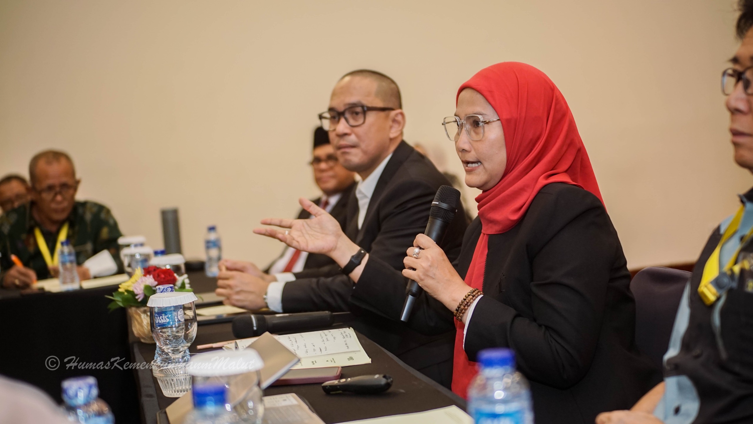 Tampak Kakanwil Kemenkumham Malut, Andi Taletting Langi, Kadiv Pelayanan Hukum dan HAM, Aisyah Lailiyah, Kabid Yankum Zulfikar Gailea mengikuti dengan antusias diskusi pokja.