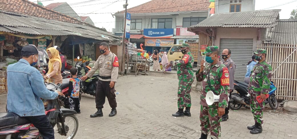 Tangerang – Dengan berjalan kaki dan dibekali pengeras suara anggota Koramil 07/Kresek Kodim 0510/Trs berjalan kaki terus melakukan woro-woro Penegakan Disiplin Mematuhi Protokol Kesehatan(PDMPK) di pasar Kresek Kabupaten Tangerang, Minggu (18/10/2020).