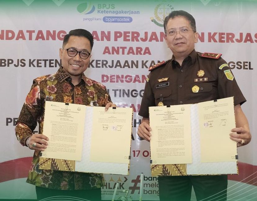 LAMPUNG – Kantor Wilayah BPJS Ketenagakerjaan Wilayah Sumbagsel melakukan penandatanganan perjanjian kerjasama dengan Kejaksaan Tinggi Lampung mengenai penanganan masalah hukum dalam bidang perdata dan tata usaha negara.