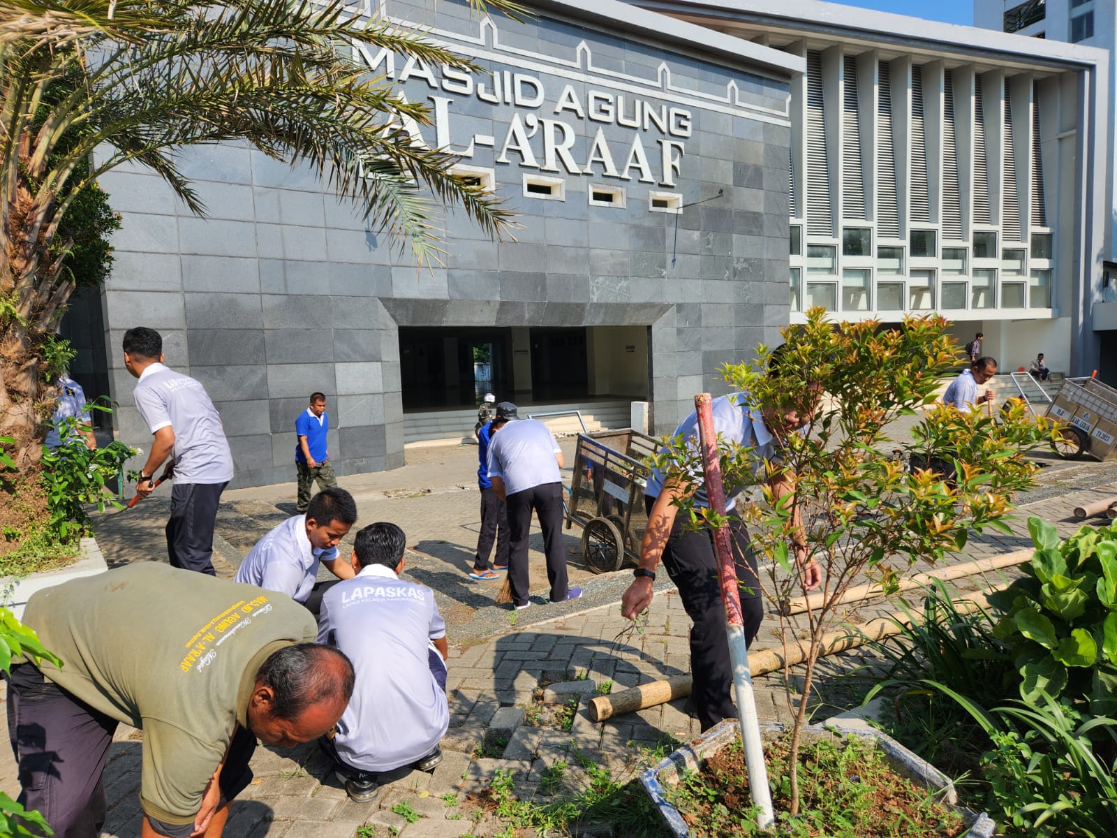 Rangkasbitung – Dalam rangka kegiatan pemasyarakatan peduli masyarakat sekitar, Lapas kelas III Rangkasbitung Kanwil Kemenkumham Banten mengadakan kegiatan Bakti Sosial berupa kegiatan pembersihan lingkungan sekitar Mesjid Agung AL- Araf Rangkasbitung, Jumat (18/10)