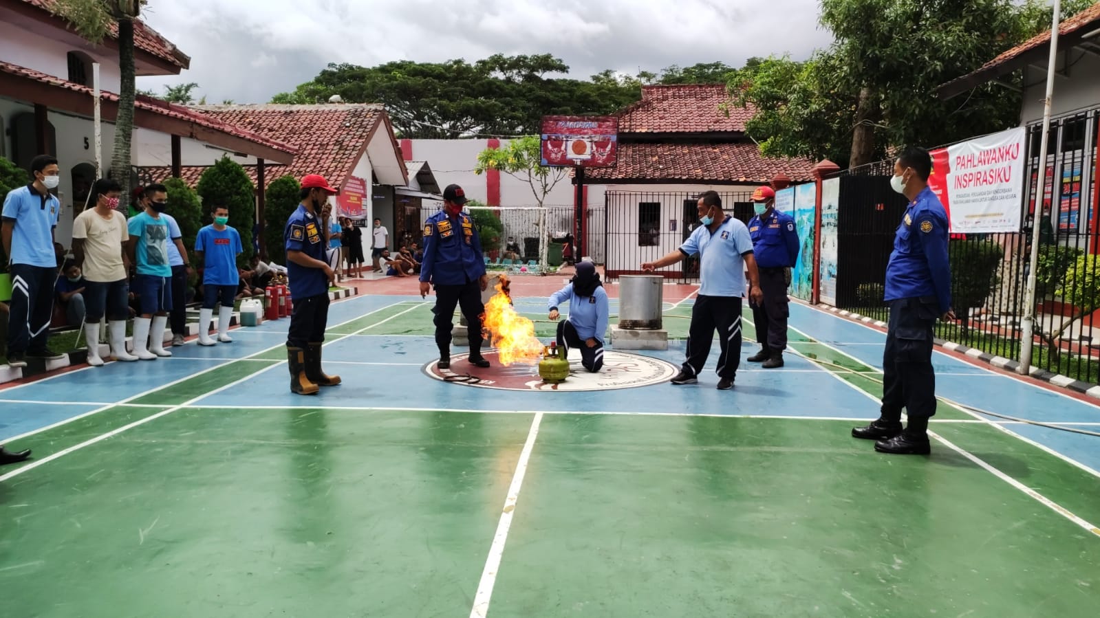 Beberapa petugas dan warga binaan didampingi Tim Damkar mempraktikan langsung bagaimana cara memadamkan api yang bisa berpotensi terjadinya kebakaran.