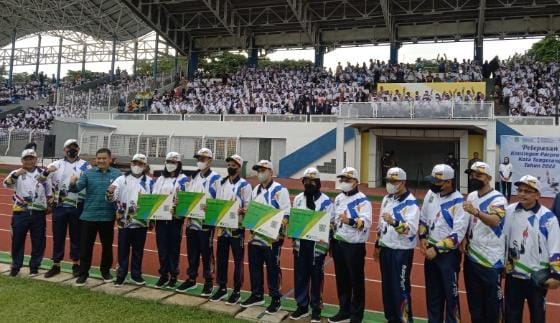 TANGERANG – Walikota Tangerang Arief R.Wismansyah bersama unsur forkopinda melepas sekira 1200 atlit terbaik kebanggaan Kota tangerang di stadion Benteng New Rebon sore kemarin (17/11/22), untuk berlaga pada Pekan Olahraga Provinsi Banten yang ke 6 yang akan di helat 20-29 November 2022 di kota Tangerang.
