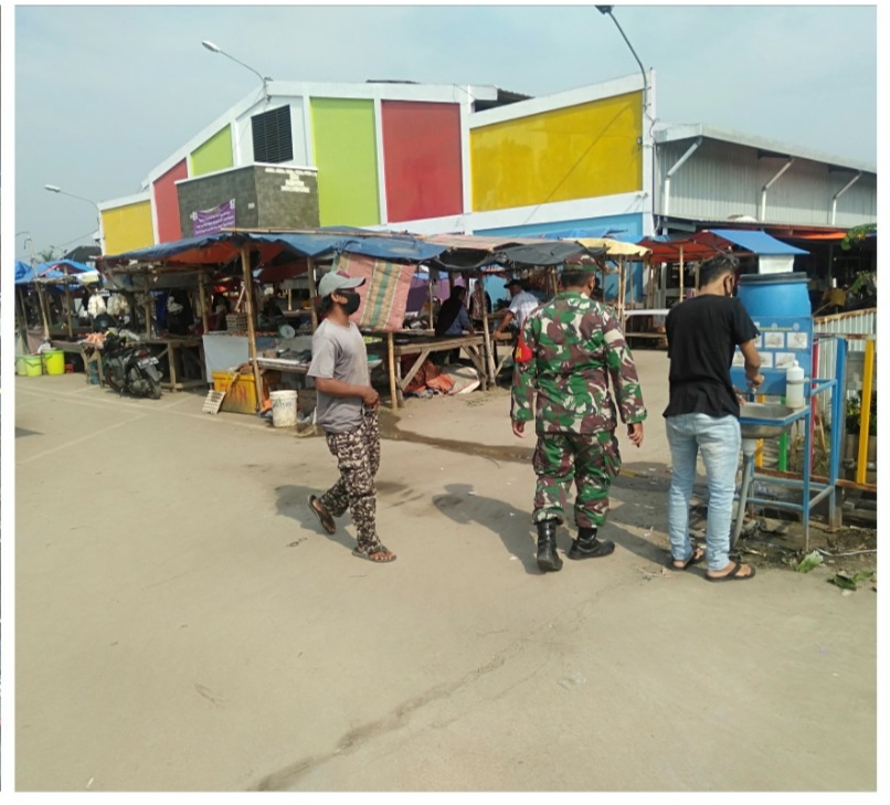 Siberindo.co – Membantu mencegah penyebaran Covid-19, Koramil 10/Sepatan Kodim 0510/Trs melakukan pengecekan kepada para pengunjung pasar tradisional secara persuasif dan humanis.