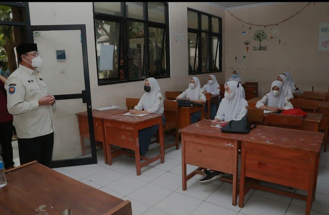 Banten – Pelaksanaan Pembelajaran Tatap Muka (PTM) sebesar 50 persen yang diberlakukan di SMA, SMK dan SKh di Provinsi Banten mendapat apresiasi dari Direktorat Jenderal (Dirjen) Pendidikan Dasar dan Menengah (Dikdasmen) melalui Direktorat Pendidikan SMA, Kementerian Pendidikan, Kebudayaan, Riset dan Teknologi (Kemendikbud Ristek) RI, dan mendorong bila sdh aman dari covid 19 bisa dilaksanakan 100 %.