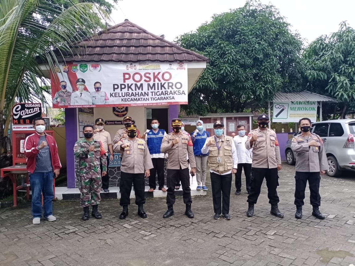 TANGERANG – Pamatwil Polres Tangerang Kombes Pol. Lutfi Martadian, SIK, SH, MH (DirNarkoba Polda Banten) dan AKBP Dr. H.Agus Rasyid. MH (Dir Tahti Polda Banten) kunjungi Posko PPKM Mikro Kelurahan Tigaraksa Kecamatan Tigaraksa, Kabupaten Tangerang.