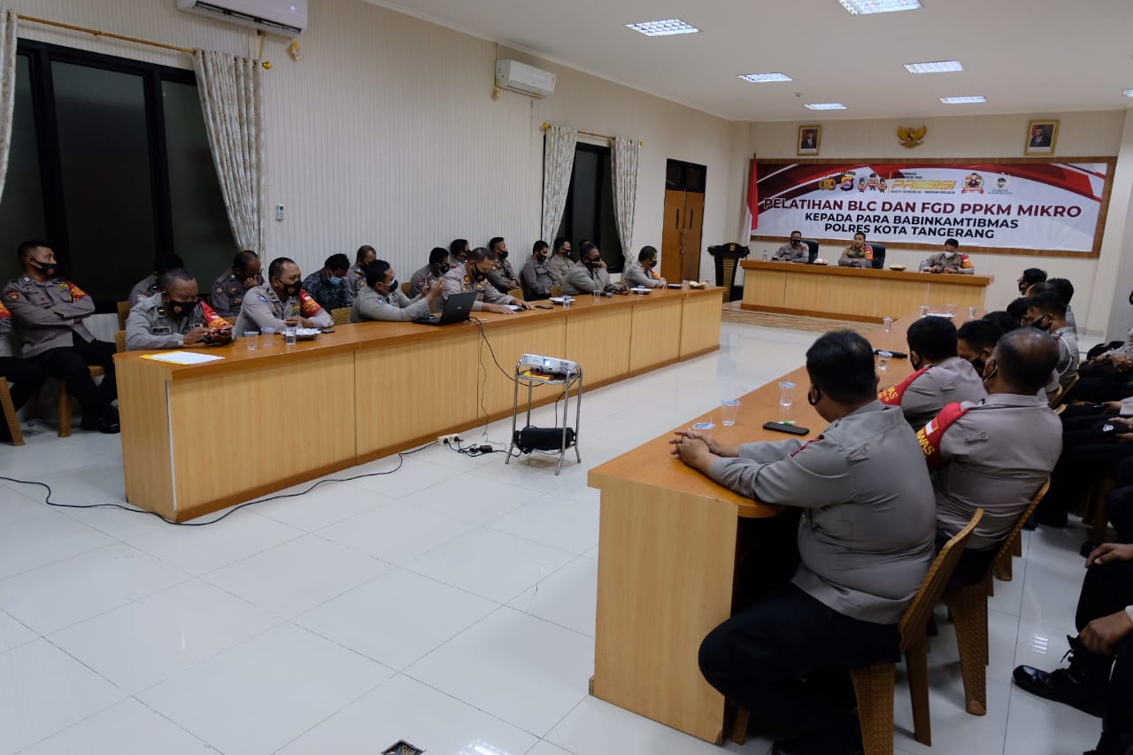 Siberindo.co -Anggota Bhabinkamtibmas jajaran Polresta Tangerang Polda Banten mengikuti Pelatihan Aplikasi Bersama Lawan Covid (BLC), Jumat (19/2/2021) Aula Polresta Tangerang.