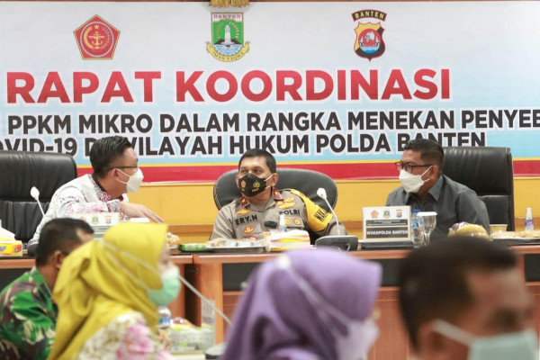 Sementara itu, usai rapat kepada pers Kapolda Banten Irjen Rudy Heryanto mengatakan, rakor digelar dalam rangka tugas Polri membantu penanganan pandemi Covid-19, dimana terakhir Pemerintah Pusat memerintahkan untuk menggelar PPKM Mikro. “Dalam hal ini kami di Polda Banten sudah menyiapkan semua personil termasuk Babinkamtibmas, Babinsa untuk standbye di pos-pos PPKM yang didirikan pemerintah daerah bersama kami. Semua layanan terkait penanganan Pandemi Covid-19 ada di situ,” paparnya.