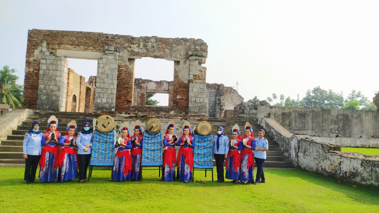 Bertempat di Cagar Budaya Keraton Kaibon, Banten, sebanyak 8 Warga Binaan Lapas Perempuan Tangerang menari dengan menggunakan pakaian seragam lengkap dengan aksesorisnya.
