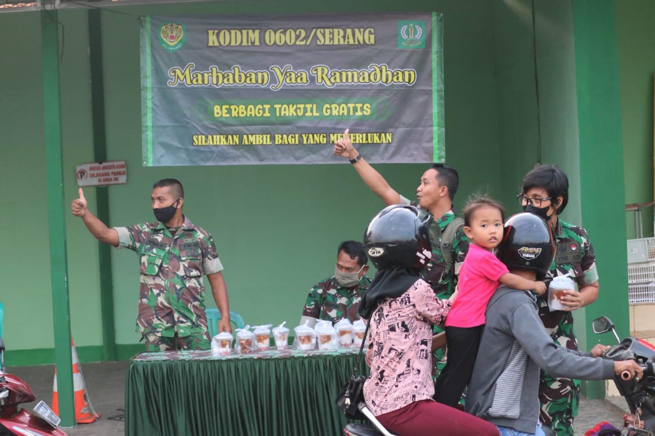 Kegiatan pembagian takjil yang dilakukan di depan Makodim 0602/Serang, selain bertujuan ibadah, juga untuk menanamkan sifat peduli kepada sesama.