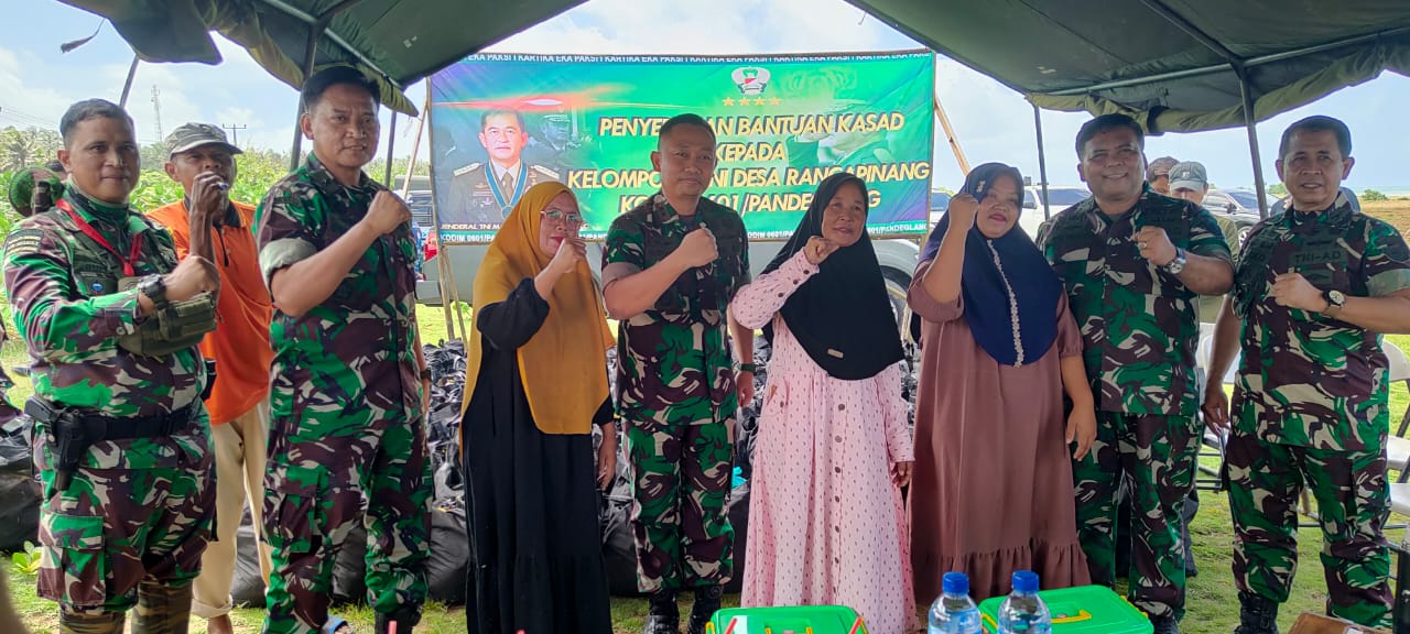 Tidak hanya meninjau lahan ketahanan pangan, rombongan juga memberikan paket sembako dari KASAD Jendral TNI Maruli Simanjuntak kepada masyarakat sekitar.