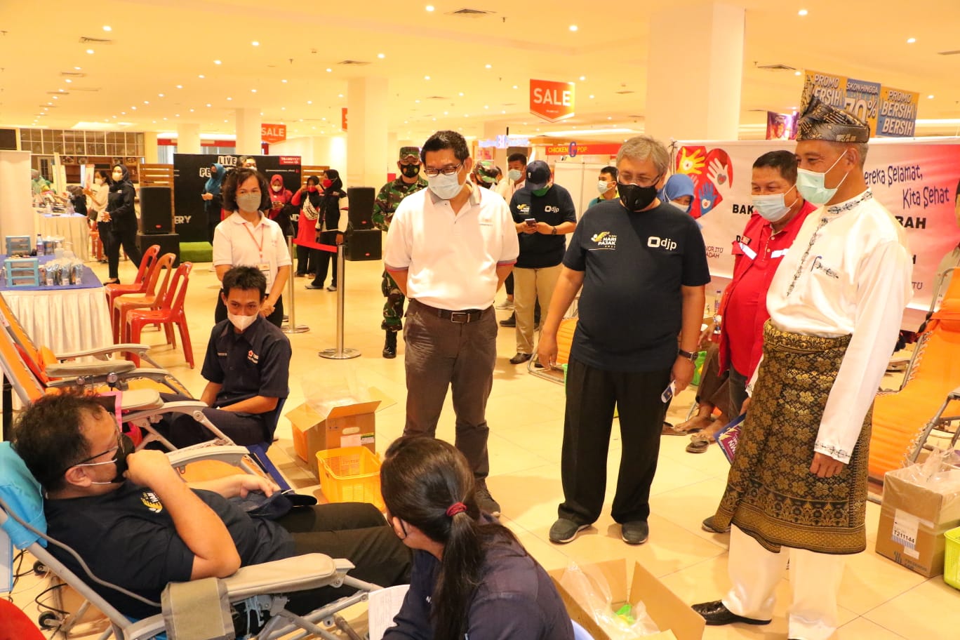 PEKANBARU – Wakil Walikota (Wawako) Pekanbaru H Ayat Cahyadi S.Si, mengapresiasi kegiatan donor darah yang dituju oleh Kantor Wilayah Direktorat Jenderal Pajak (DJP) Riau dan Relawan Covid-19 serta Palang Merah Indonesia (PMI) Kota Pekanbaru dalam rangka Hari Pajak 2021 yang dipusatkan di Transmart, Jalan Soekarno Hatta, Jumat (16/7).