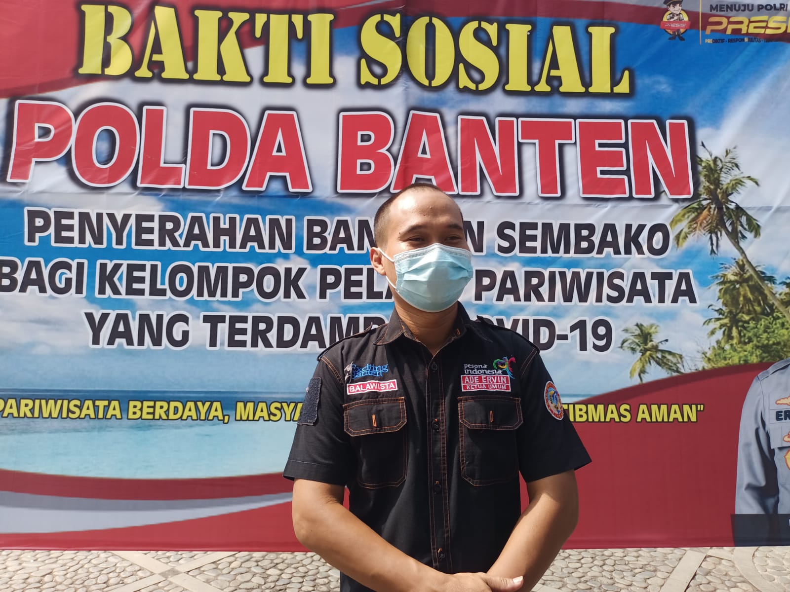 Saat ditemui usai menerima bantuan paket sembako, Ade Ervin selaku ketua Badan Penyelamat Wisata Tirta (Balawista) mengucapkan terimakasih atas bantuan yang diberikan Polda Banten kepada Kelompok Pelaku Pariwisata.