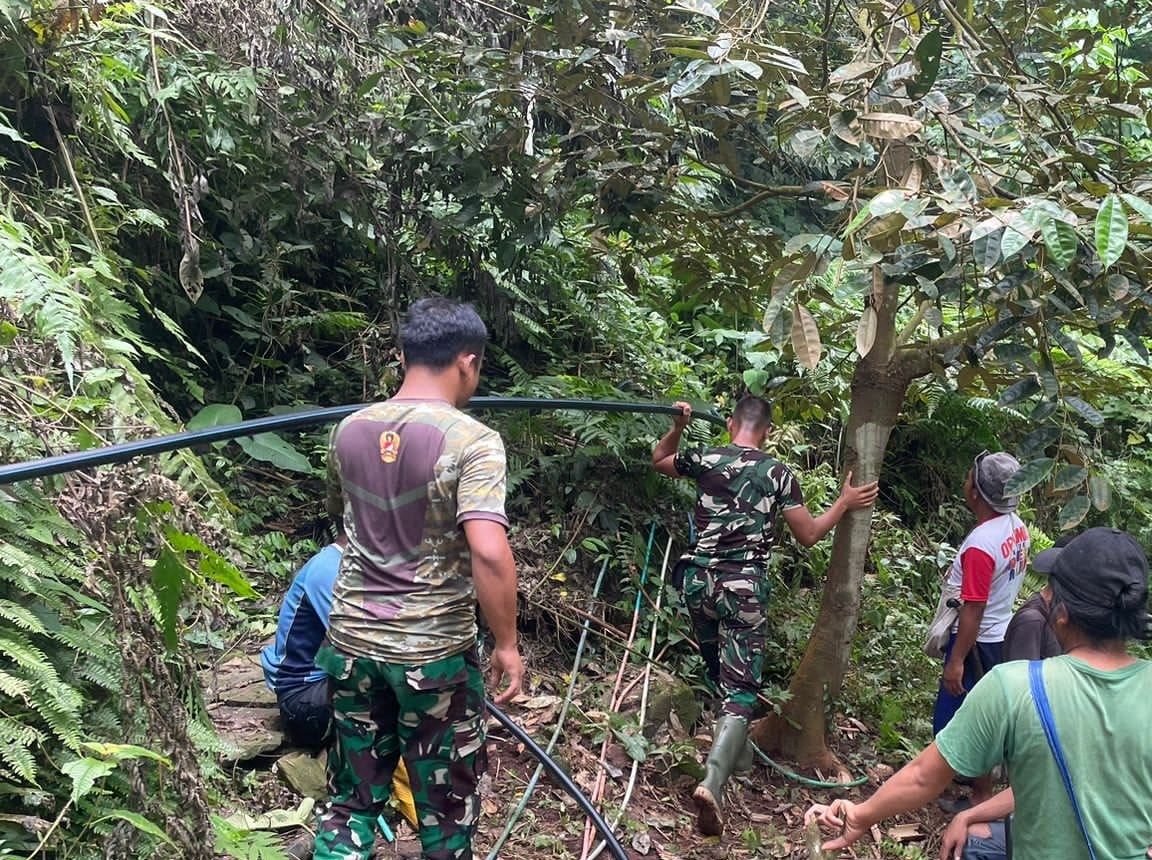Satuan tugas (Satgas) TNI Manunggal Membangun Desa (TMMD) 121 Kodim 0601/Pandeglang di hari ke 26 pelaksanaan TMMD tuntaskan pekerjaan pipanisasi di Desa Cikumbueun Kecamatan Mandalawangi, kabupaten Pandeglang, Minggu (18/08/24).