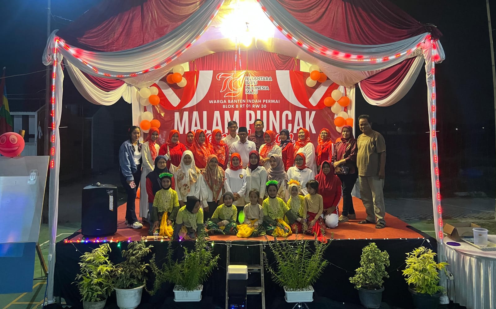Terakhir, rangkaian HUT RI Ke-79 ini ditutup dengan pentas hiburan, pembagian hadiah dan makan bersama seluruh warga Blok B Perumahan Banten Indah Permai.