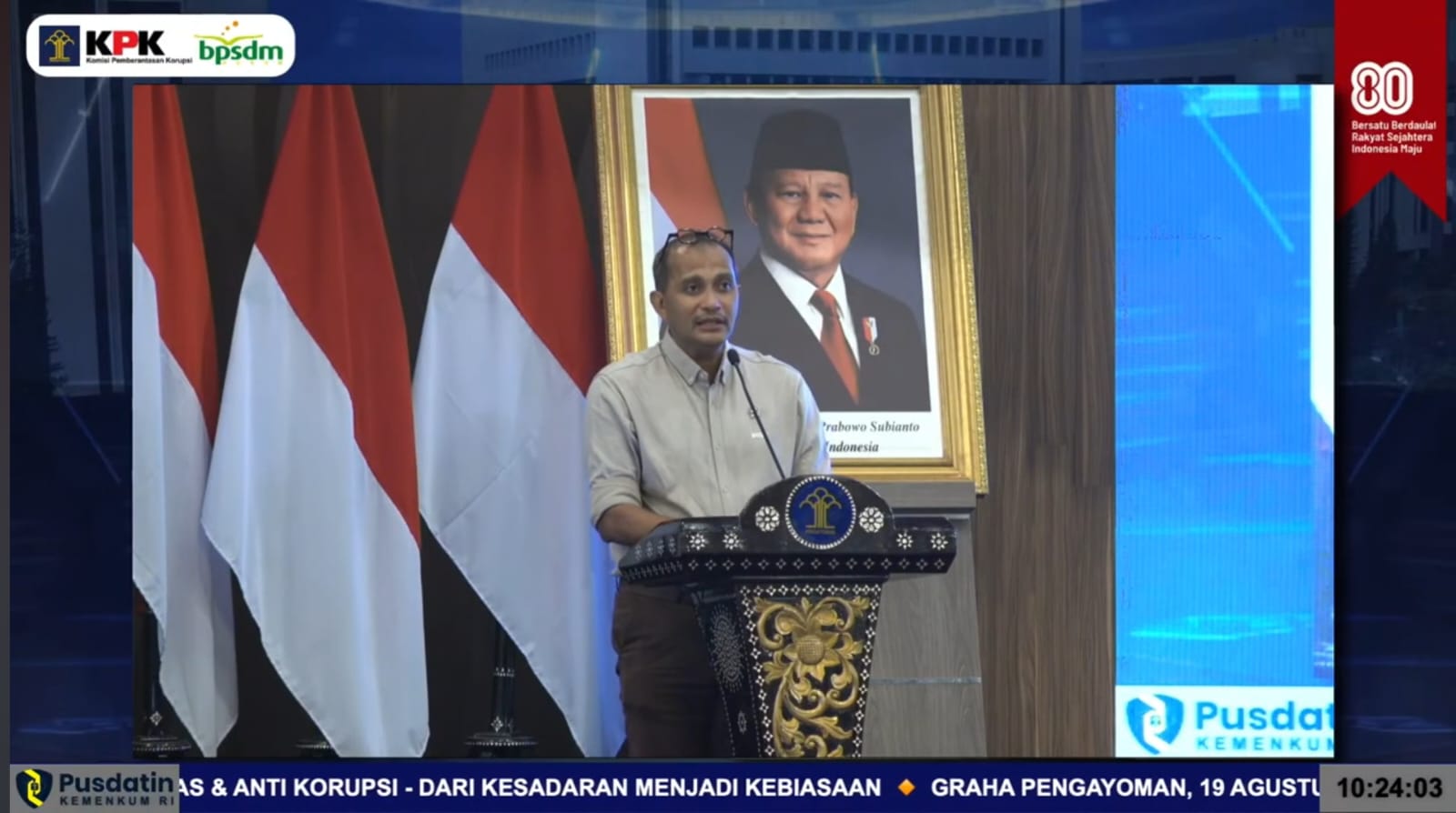 “Komitmen terhadap integritas tidak cukup hanya diwujudkan dalam kebijakan, melainkan harus tercermin dalam tindakan nyata seluruh aparatur negara,” tuturnya.
