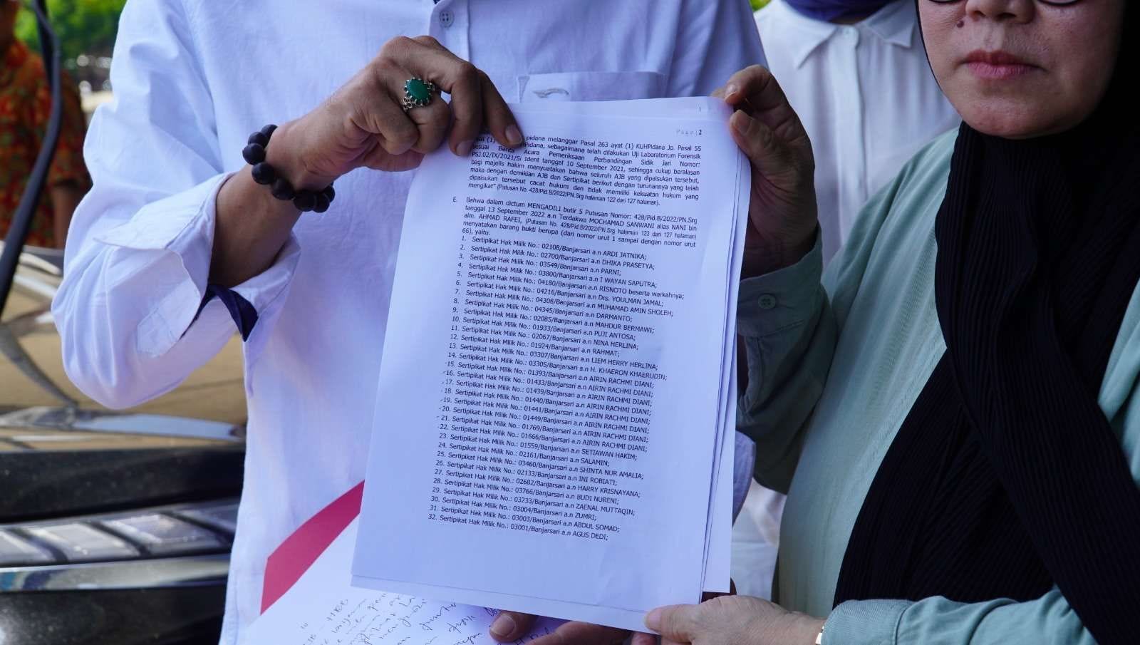 “Karena hanya di antaranya ada pihak lain mengklaim. Tetapi secara umum yang menguasai objek tanah adalah prinsipal kami, Ibu Neneng,” kata kuasa hukum Neneng saat mendatangi Kantor Badan Pertahanan Nasional Kota Serang, Banten.