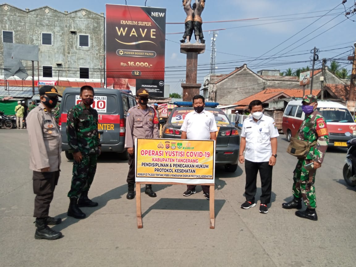 Danramil 09/Mauk Kapten Arh Mulyono menyampaikan, sasaran Operasi yustisi di tugu bundaran tugu Kecamatan Mauk Kabupaten Tangerang.
