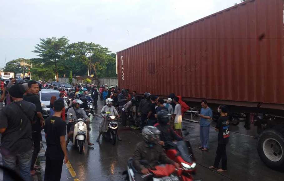 Bekasi – Junaedi, pengendara sepeda motor tewas terlindas truk kontainer di Jalan Urip Sumoharjo Lemahabang, Kecamatan Cikarang Utara, Kabupaten Bekasi, Kamis (18/11/2021) petang. Berdasarkan identitas yang ditemukan di lokasi kejadian, korban merupakan wartawan Metro Aktual.