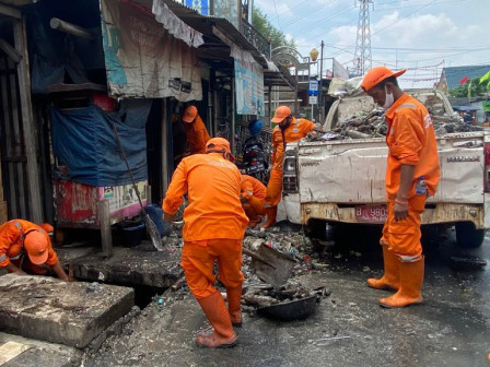 Dikatakan Kris, pihaknya menerjunkan 10 petugas PPSU untuk menguras lumpur dan mengangkut sampah dari dalam saluran air. Sampah yang berhasil diangkut sebanyak 7 meter kubik.