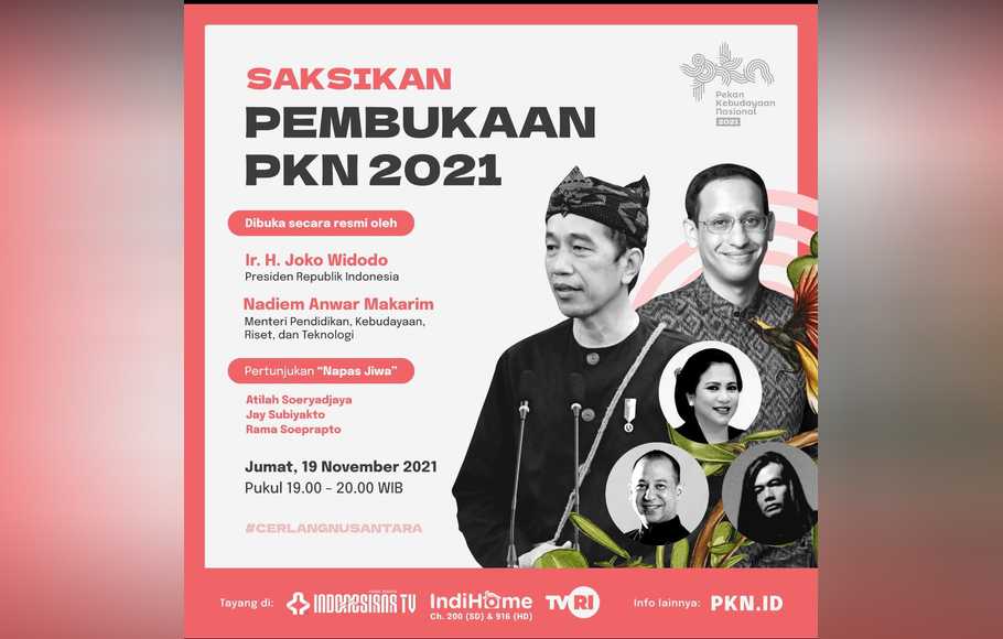 Ia menuturkan sejumlah kegiatan PKN 2021 yang digelar secara virtual ini akan berlangsung 19 November hingga 26 November 2021. Acara ini dapat disaksikan di Indonesiana.tv atau langsung cek PKN.ID dan TVRI.