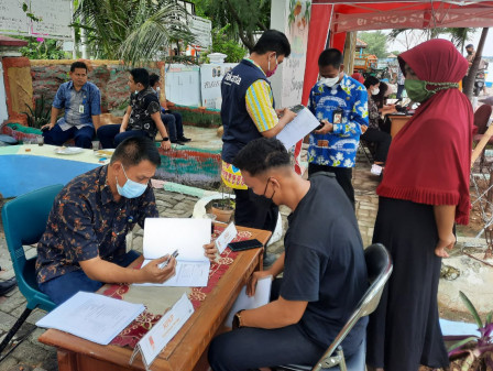 Unit Pengelola Pelayanan Terpadu Satu Pintu (UP PTSP) Kabupaten Kepulauan Seribu bersama instansi terkait menggelar layanan jemput bola melalui Pelayanan Terpadu Keliling (PTK) di halaman kantor Kelurahan Pulau Harapan, Kecamatan Kepulauan Seribu Utara.