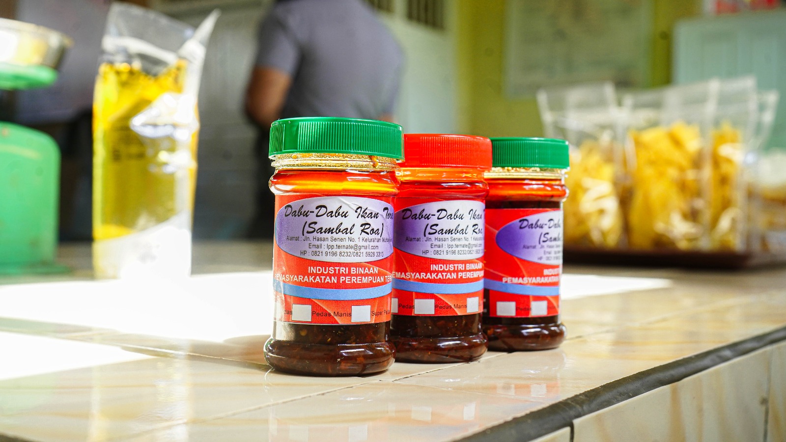 Beberapa produk warga binaan LPP Ternate yang dilihat langsung oleh Hensah, di antaranya sambal roa, tas rajut, dan keripik. Produk tersebut merupakan hasil karya warga binaan LPP Ternate melalui program pembinaan kemandirian.