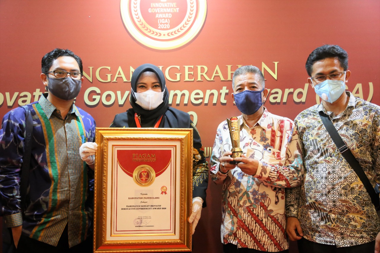 SIBERINDO.CO-Pemerintah Kabupaten Pandeglang meraih Penghargaan Innovative Government Award 2020, dengan kategori Sangat Inovatif. Penghargaan diberikan oleh Kepala Badan Penelitian dan Pengembangan Kemendagri Republik Indonesia Agus Fatoni dan diterima Langsung oleh Bupati Pandeglang Irna Narulita di Ballroom Sultan Hotel, Jakarta, Jumat (18/12/20).