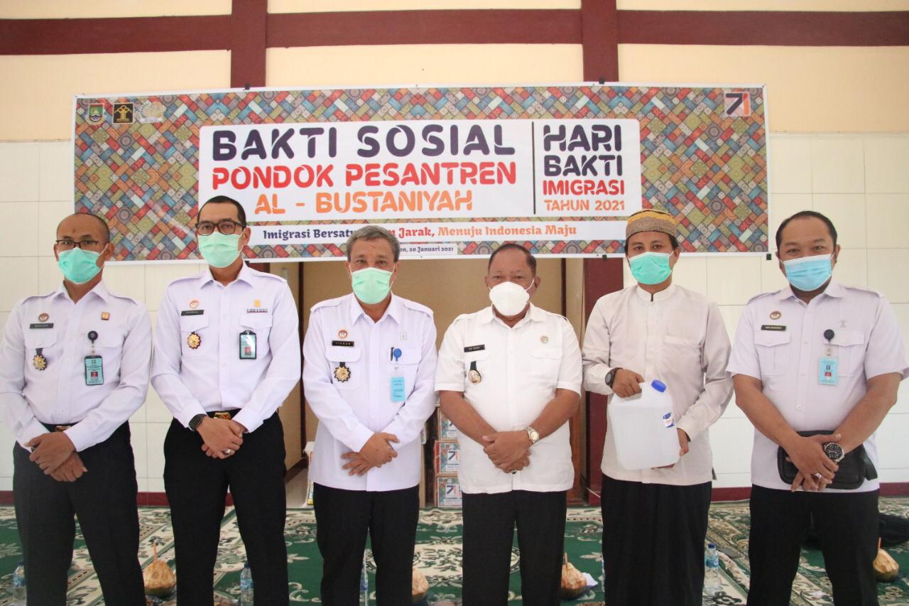 Siberindo.co – Kantor Wilayah Kementerian Hukum dan HAM Banten berserta Unit Pelaksana Teknis Keimigrasian di Wilayah Banten menyerahkan bantuan sosial ke Pondok Pesantren (Ponpes) Al-Bustaniyah di lingkungan Curug Sekolah, Kelurahan Bagendung, Kecamatan Cilegon, Kota Cilegon. Kegiatan ini diselenggarakan dalam rangka memperingati Hari Bakti Imigrasi Ke-71.