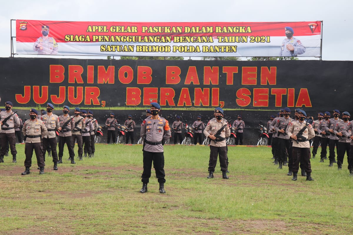 Apel gelar pasukan dan peralatan tersebut dalam rangka untuk memastikan Kesiapsiagaan personel Satuan Brimob Polda Banten dalam penanggulangan bencana tahun 2021.
