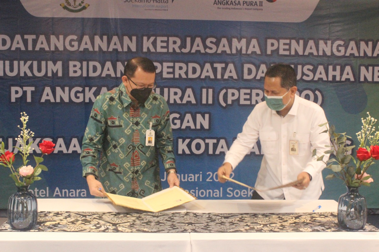 Penandatanganan perjanjian kerjasama (MoU) ini sebagai bentuk realisasi kewenangan Kejaksaan RI di bidang Perdata dan Tata Usaha Negara sesuai amanah Undang-Undang Nomor 11 Tahun 2021 tentang Kejaksaan RI. Penandatanganan perjanjian kerjasama (MoU) ini sebagai bentuk payung hukum sekaligus titik awal untuk PT. Angkasa Pura II (Persero) dapat didampingi oleh Kejaksaan Negeri Kota Tangerang dalam penyelesaian permasalahan-permasalahan di bidang keperdataan dan Tata Usaha Negara, selain itu dalam pendampingan hukum yang dilakukan Jaksa Pengacara Negara Kejaksaan Negeri Kota Tangerang nantinya dapat meminimalisir peluang adanya perbuatan melawan hukum di lingkungan PT. Angkasa Pura II (Persero).