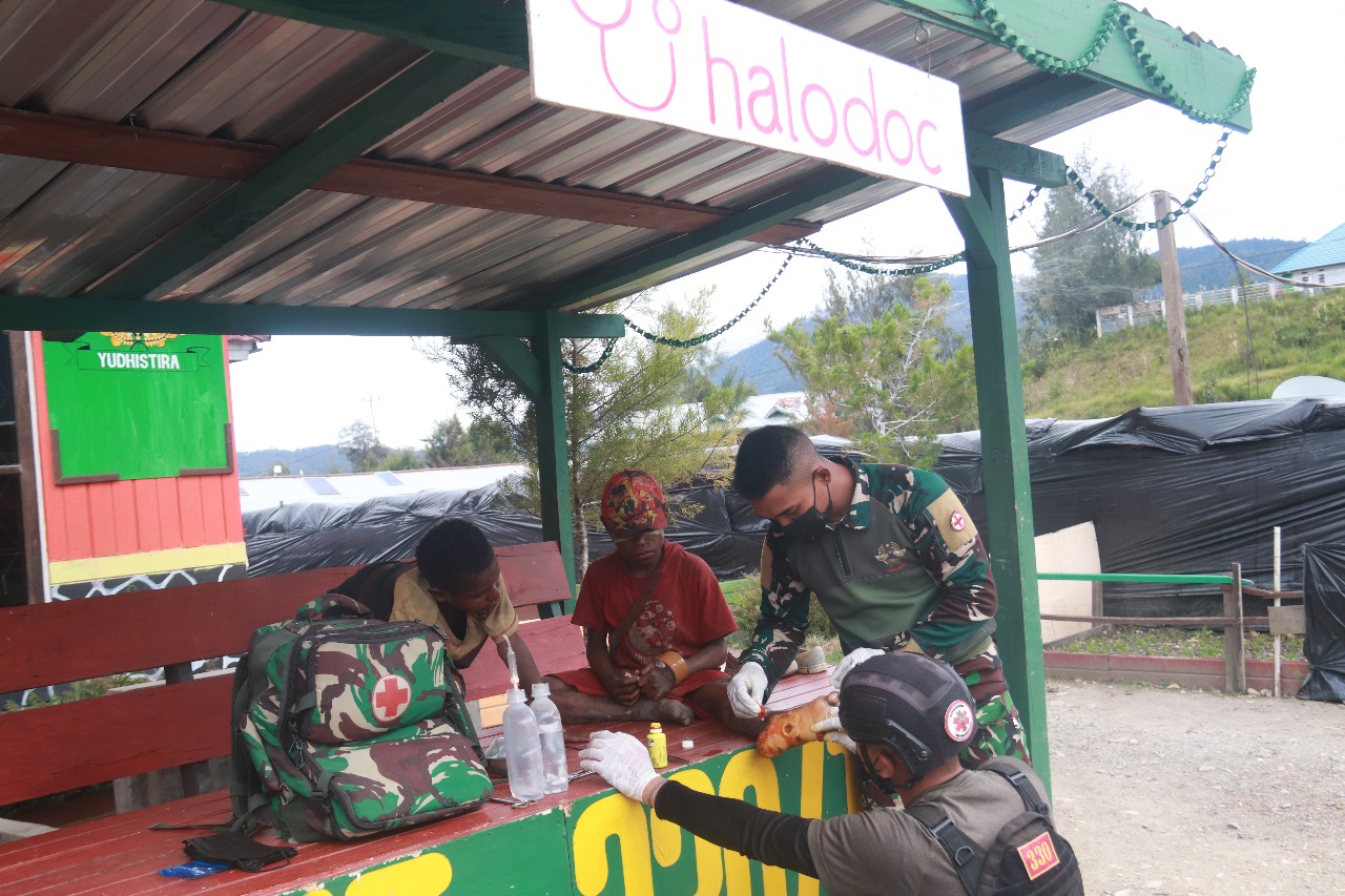 Intan Jaya – Program Halo Doc Tri Dharma kembali beraksi. Kali ini Tim Kesehatan Satgas 330 memberikan layanan pengobatan pada luka infeksi di telapak kaki Anius Sani bertempat di Pos Mamba, Distrik Sugapa, Kab. Intan Jaya, Papua Tengah, pada Selasa (20/2/24).
