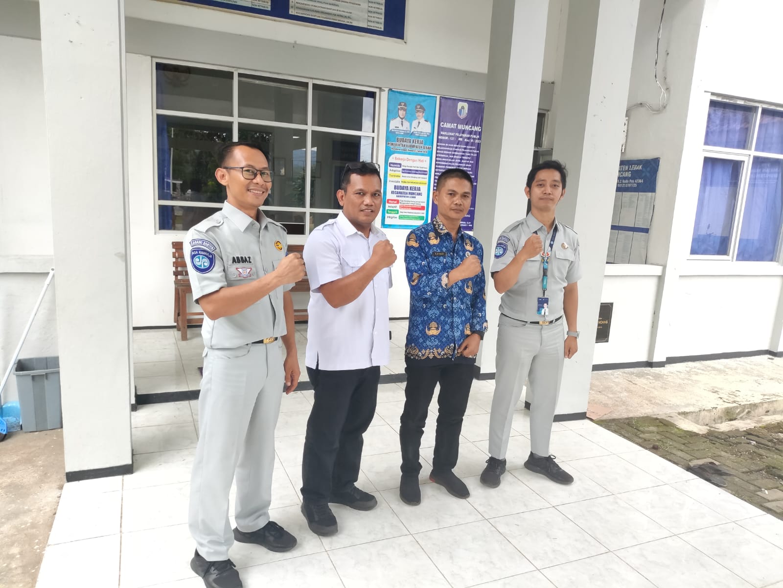 Rangkasbitung – Petugas Jasa Raharja Samsat Bersama Tim Pembina Samsat Rangkasbitung melaksanakan kunjungan ke Kantor Kecamatan Muncang, Kabupaten Lebak. Kedatangan Tim disambut dengan baik oleh Kasi Perum Kantor Kecamatan Muncang Bapak Eji Fauzi (20 maret 2024).