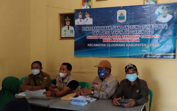 LEBAK – Pemerintah Desa (Pemdes) Pasirbungur Kecamatan Cilograng Kabupaten Lebak Provinsi Banten, menyalurkan Bantuan Langsung Tunai (BLT) Dana Desa ( DD) tahap satu tahun anggaran 2021 kepada 100 Keluarga Penerima Manfaat (KPM) dan membagikan masker bertempat di aula kantor Desa Pasirbungur, Selasa (20/4/2021) Dikutip Bungasbanten.id – Group siberindo.co