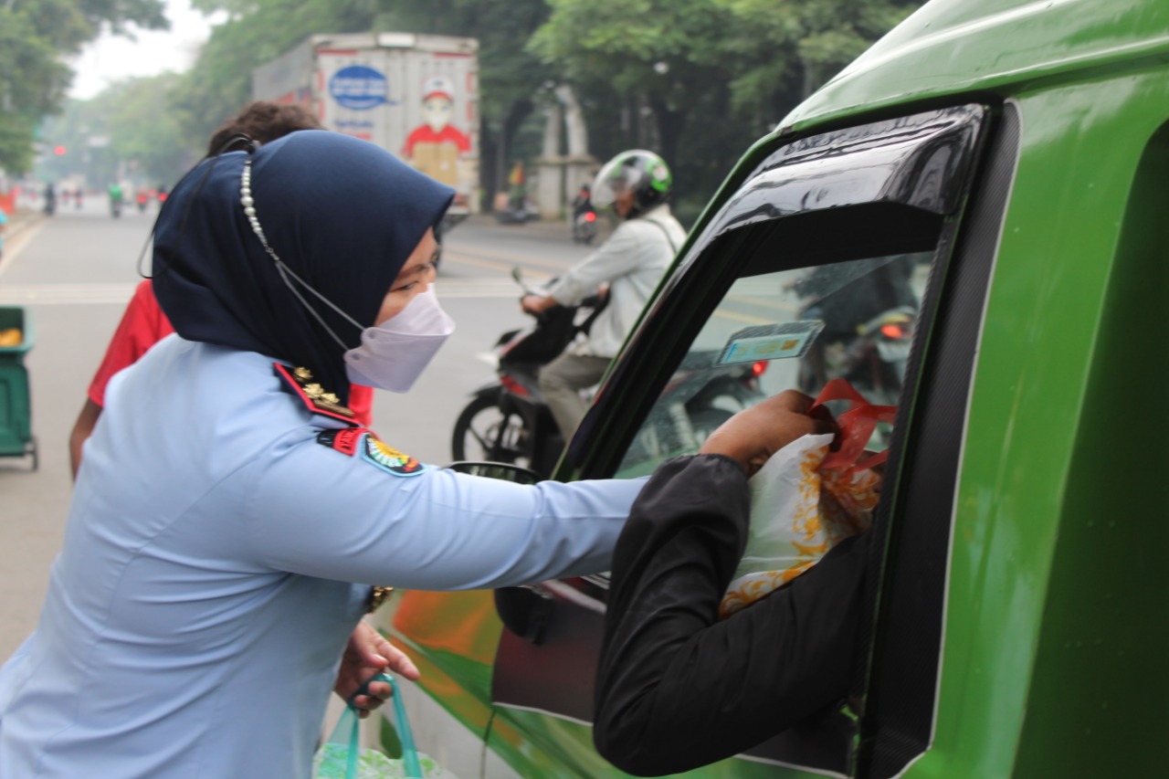 Sebanyak 100 bungkus Takjil yang sudah dibuat oleh Pegawai kemudian dibagikan kepada Masyarakat sekitar mulai dari Pengemudi online, Pengemudi Angkutan Umum, Petugas Kebersihan, dan lain sebagainya.