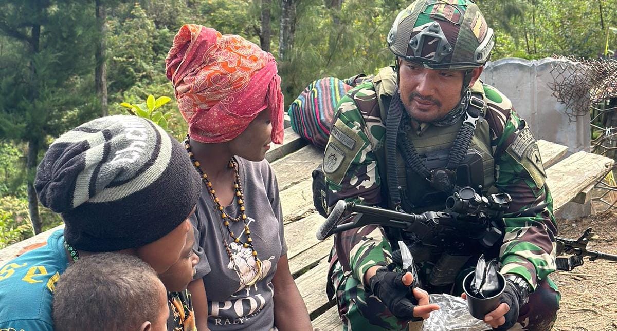 Intan Jaya – Papua Satgas Yonif 509 Kostrad melalui TK Mamba melaksanakan patroli dan membagikan bantuan kepada masyarakat yang bertempat di Kampung Mamba Bawah. Senin (20/05/2024).