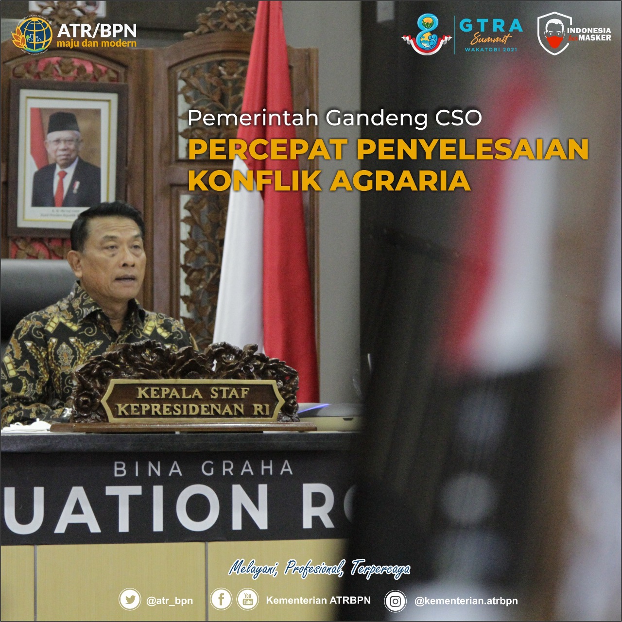 Seperti dilansir dari atrbpn.go.id, Dalam rapat koordinasi Tim Bersama Reforma Agraria yang dipimpin kepala Staf Kepresidenan Moeldoko hari ini (18/6/2021), CSO menyampaikan beberapa isu yang menjadi kendala penyelesaian konflik agaria, antara lain indikasi intimidasi dan kriminalisasi di lapangan dan kebutuhan dukungan kepala daerah dalam penyelesaian konflik agraria.
