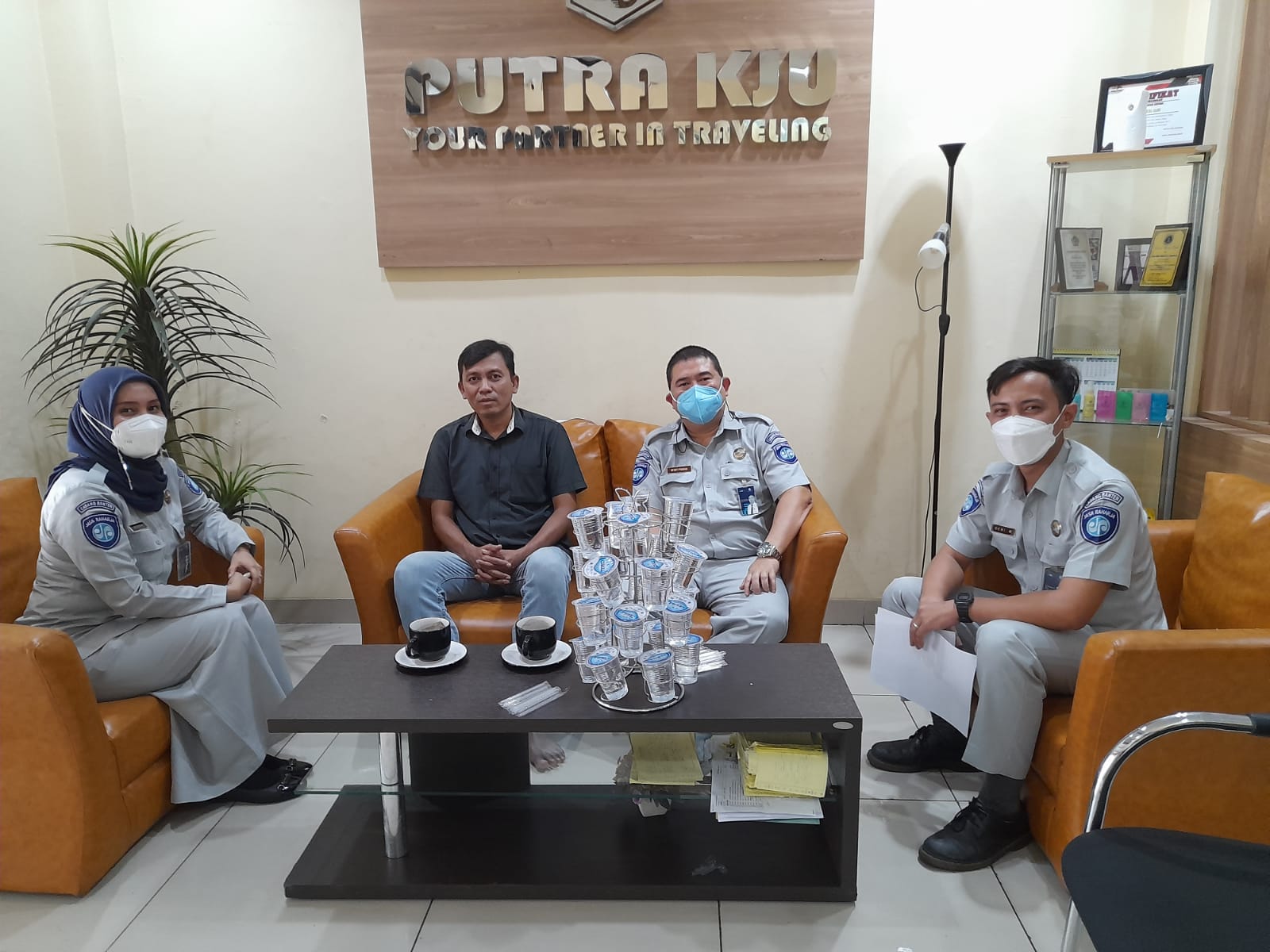 Tangerang – Penanggung Jawab Samsat Induk Balaraja Denny Pribadi , Pelaksana Administrasi Samsat Gerai Kronjo Deni Muhammad Resta dan Pelaksana Administrasi Samsat Gerai Pasar Kemis Riska Amelia melakukan giat Customers Relationship Management (CRM) dengan mengunjungi kantor ataupun pool perusahaan PO Putra KJU., Selasa (19/07/22).
