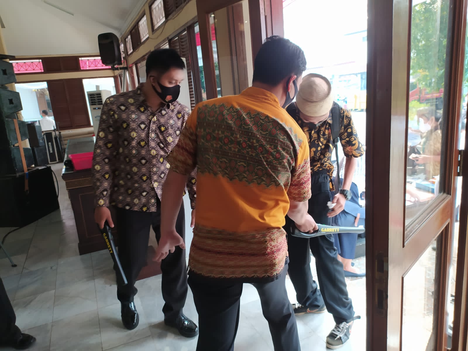 “Dan dalam pelaksanaannya, kami melakukan pemeriksaan seluruh ruangan yang akan di tinjau oleh tamu VIP, dan juga kami melakukan pemeriksaan terhadap orang yang datang serta memeriksa barang bawaannya menggunakan peralatan Secdoor dan Metal Detector agar terjamin kepastiannya tidak membawa benda – benda seperti sajam, senpi dan sejenisnya yang dapat membahayakan keamanan dan keselamatan pada pejabat Negara/Daerah,” jelas Edy Sumardi.