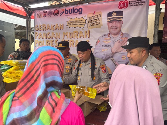 Kapolres Serang AKBP Condro Sasongko mengatakan kegiatan gerakan pangan murah (GPM) Polri ini sebagai wujud nyata kehadiran Polri di tengah masyarakat dalam membantu warga mendapatkan komoditas dengan harga terjangkau.