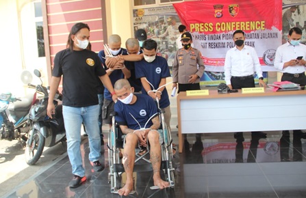 “4 (empat) Pelaku berhasil di tangkap Sat Reskrim yang terdiri dari 3 (Tiga) Pelaku Curat inisial EH (29), DM (21), MB (24), dan satu pelaku penadahan inisial SH (36),” ungkap Indik.
