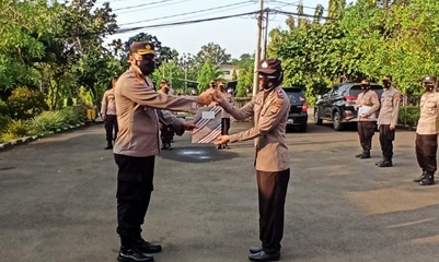 KOTA SERANG – Karorena Polda Banten Kombes Pol Wingky Adhityo Kusumo, S.IK.,M.H. berikan penghargaan kepada personel Rorena Aiptu Dian Siti Khodijah pada saat pelaksanaan Apel Pagi Polda Banten, Senin (20/09/2021) Dikutip Bungasbanten.id – Group siberindo.co