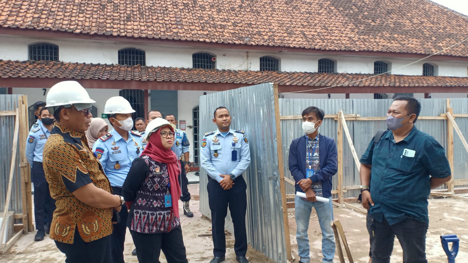 LEBAK – Kepala Divisi Pemasyarakatan (Masjuno) dan Kepala Divisi Administrasi Kanwil Kemenkumham Banten (Yusfini) sambangi Lapas Kelas III Rangkasbitung untuk meninjau progres Pembangunan Blok Hunian WBP, Kamis (20/10).