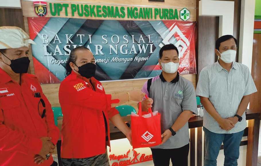 Dari markas Laskar Ngawi di Katengko, rombongan bergerak menuju Puskesmas Kecamatan Bringin. Di lokasi tersebut, bantuan diserahkan kepada Kepala UPT Puskesmas Bringin, Katon Prasetyo, didampingi para nakes.