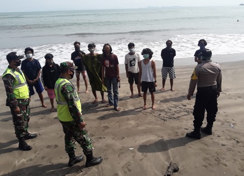 SERANG – Koramil 2305/Cinangka Kodim 0623/Cilegon melakukan penghimbauan pada masyarakat yang mengunjungi Pantai sekitarnya di Kecamatan Cinangka Kabupaten Serang Provinsi Banten