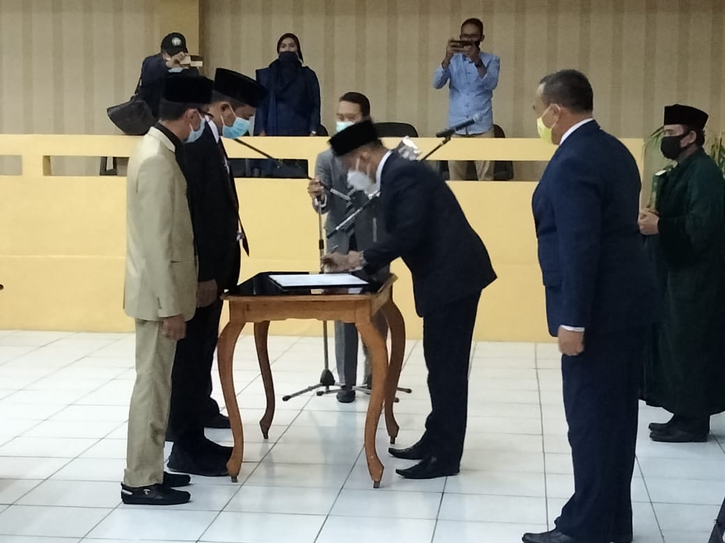 SIBERINDO.CO-Dewan Perwakilan Rakyat Daerah (DPRD) Kabupaten Lebak menggelar rapat paripurna Penggantian Antar Waktu (PAW) Medi Juanda menjadi anggota DPRD Lebak menggantikan Lita Mulyati dari fraksi NasDem yang telah meninggal dunia beberapa waktu lalu. Pengambilan sumpah berlangsung di Ruang Rapat Paripurna DPRD Lebak dengan menerapkan protokol kesehatan secara ketat, Rabu (20/1/2021).