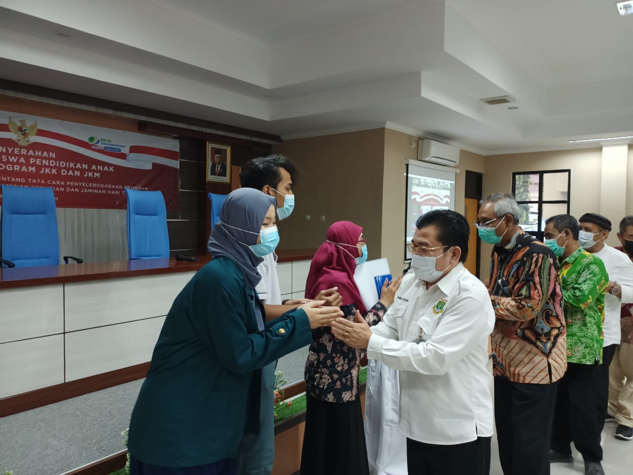 Adapun penyerahan beasiswa pendidikan tersebut sesuai permenaker 5 Tahun 2021 tentang tata cara penyelenggaraan program Jaminan Kecelakaan Kerja, Jaminan Kematian dan Jaminan Hari Tua.