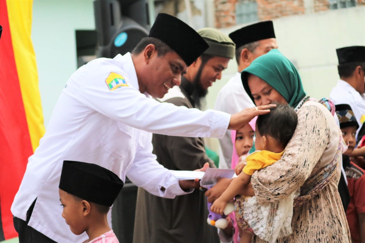 Pemberian santunan kepada anak yatim dan duafa, berlangsung saat acara buka puasa bersama yang rutin dilakukan setiap tahunnya.