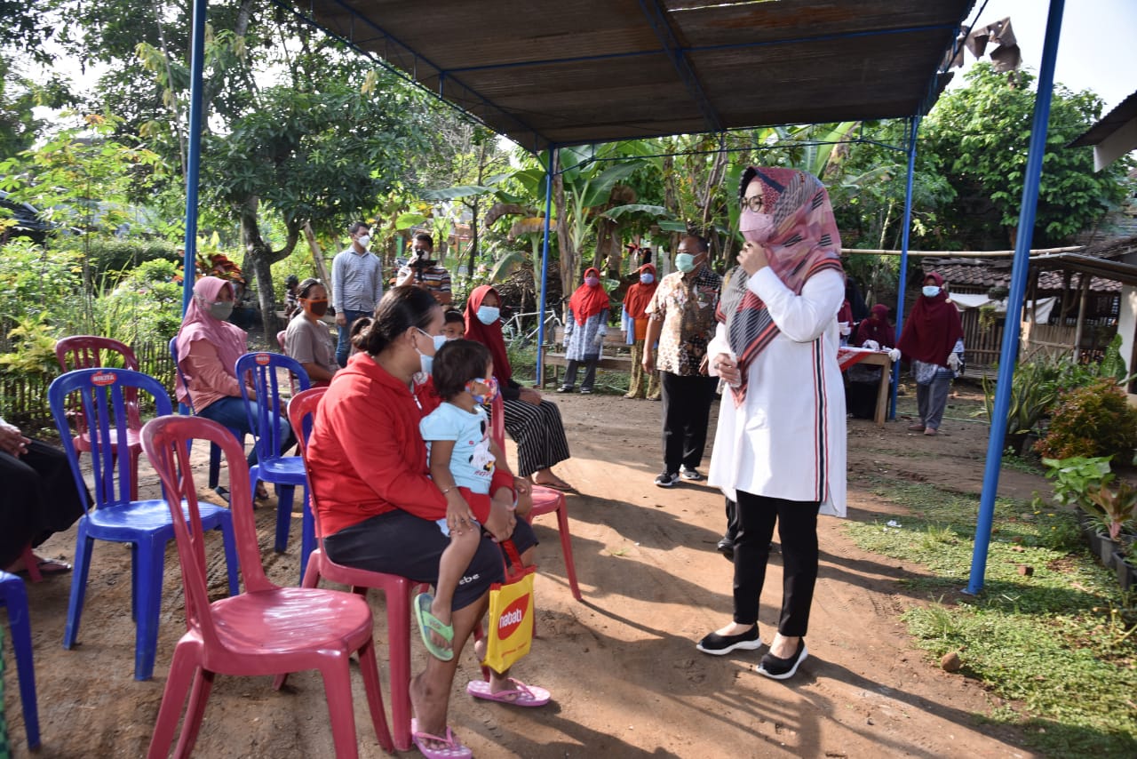 SUKOHARJO – Bupati Sukoharjo Etik Suryani melakukan inspeksi mendadak penyaluran Bantuan Pangan Nontunai (BPNT) untuk bulan Juni di Desa Mertan, Jagan, dan Bendosari, Kecamatan Bendosari, Sabtu (19/6/2021). Etik melihat langsung ketertiban masyarakat dalam menjalankan protokol kesehatan.